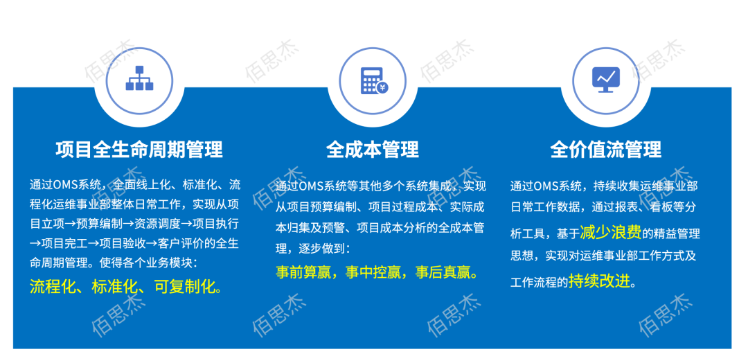 通过OMS系统,制定统一的项目执行过程数据的采集规则,形成完整、标准的数据库,为项目管理分析做有效的数据支撑。