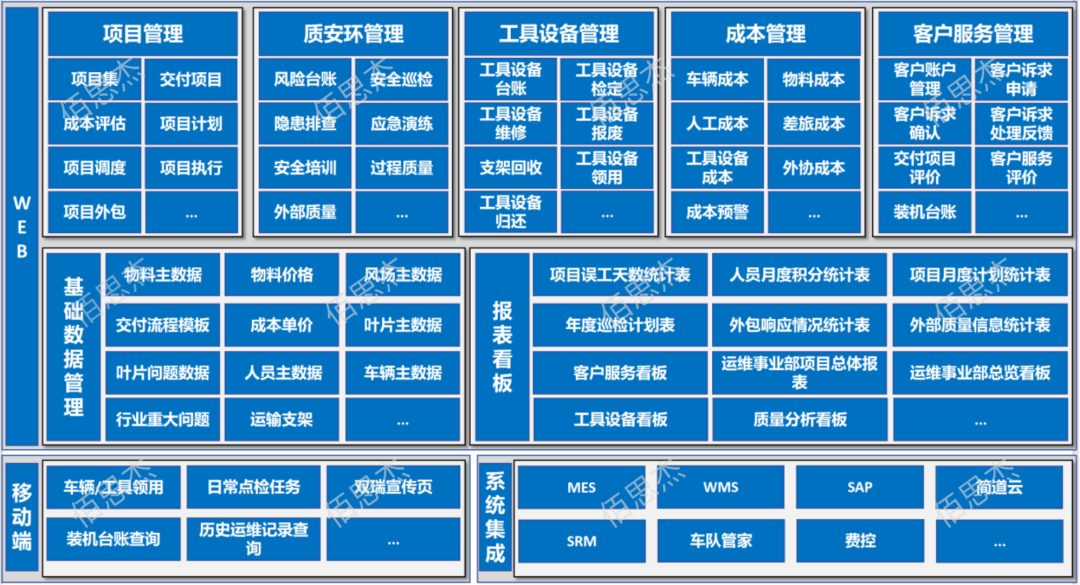 该项目旨在通过数字化、智能化手段,强化客户服务管理、实现项目全生命周期管理、优化项目执行与资源调度、优化工具设备管理流程以及整合信息资源、消除数据孤岛,从而切实解决当前面临的各项痛点,重塑运维服务流程,树立风电智能运维领域的行业标杆。