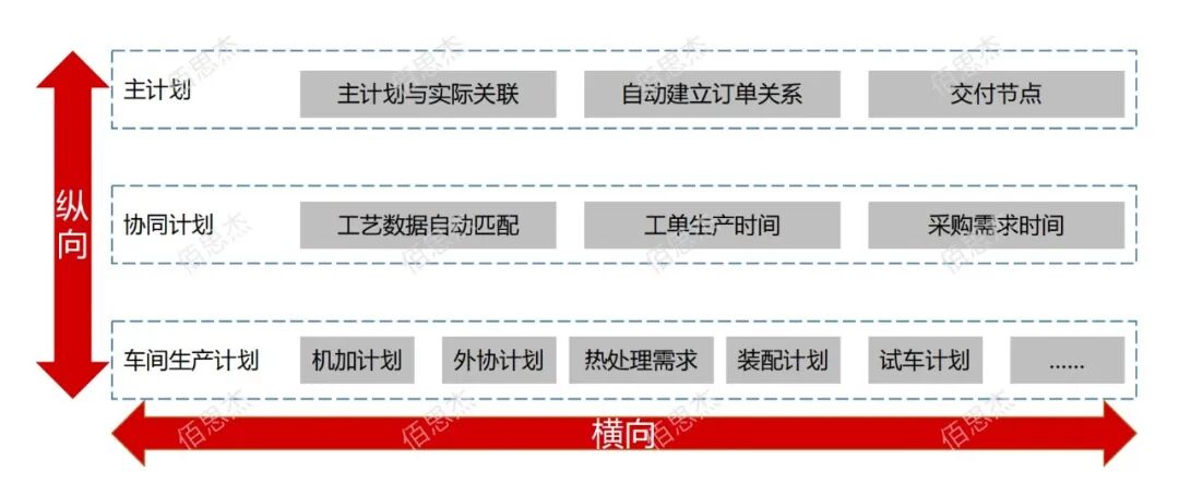 纵向以销售订单为龙头的三层计划管理体系,横向实现多公司、多分厂、多车间协同支撑。构建主生产计划、车间协同计划、工序作业计划的三层一体化管理体系。实现基于BOM结构的主计划分解构建计划网络、基于齐套检查的车间生产计划管理,基于工位作业任务的生产执行。达到计划逐层穿透、逐级反馈、跨部门跨组织快速响应、实现一体联动的建设效果。