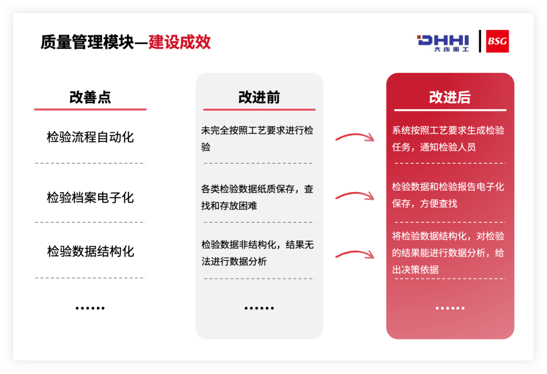 质量检验结构化。实现事前、事中、事后的在线质量控制,建立产品质量档案和全过程追溯,健全质量成本核算体系。